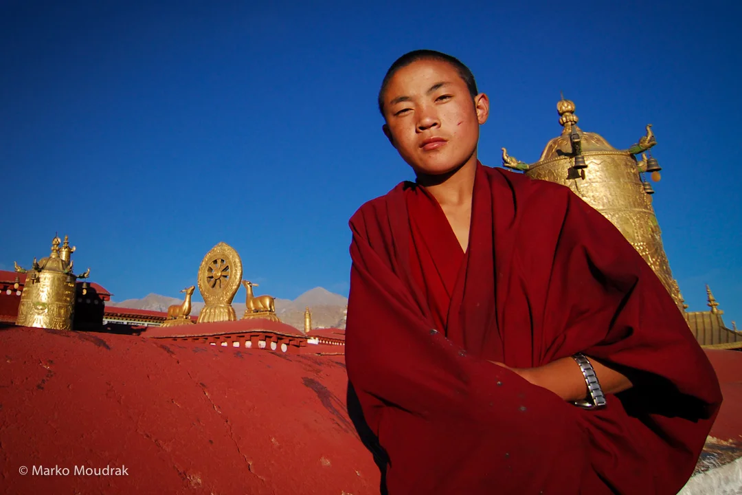 Young monk with fake rolex on top of Jokand, the holiest Bhudist temple in the world